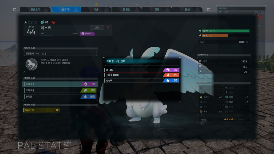 > 3단계 액티브 스킬을 교체하고자 하는 팰 선택