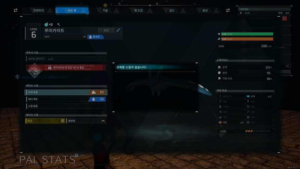 > 4단계 선택된 팰 정보창으로 화면 전환