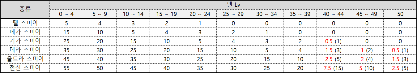 팰의 체력이 높은 상태라면 높은 등급의 스피어를 사용하였다 하더라도 튕겨져 나가버리는 상황이 발생될 수도 있다.