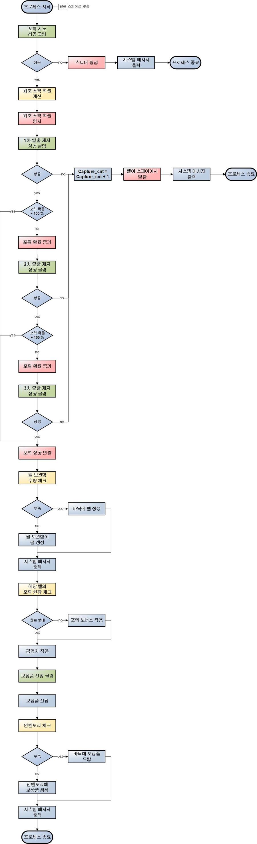 - 체력에 따른 포획 시도 성공 확률 보정