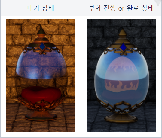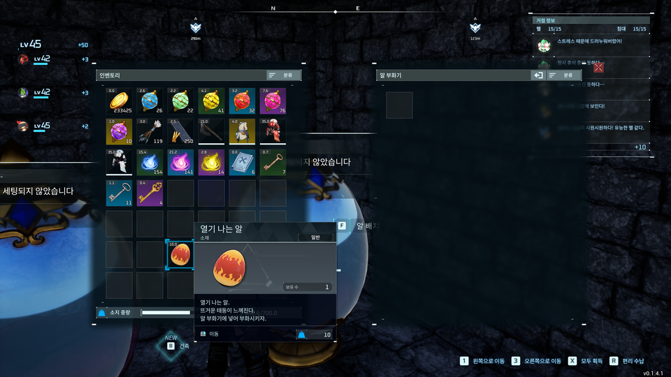 : 아래와 같이 좌측에 생성된 인벤토리에서 부활하고자 하는 알을 오른족 마우스 버튼으로 클릭하거나 왼쪽 마우스 버튼으로 우측의 빈 슬롯에 드래그 & 드랍하면 된다.