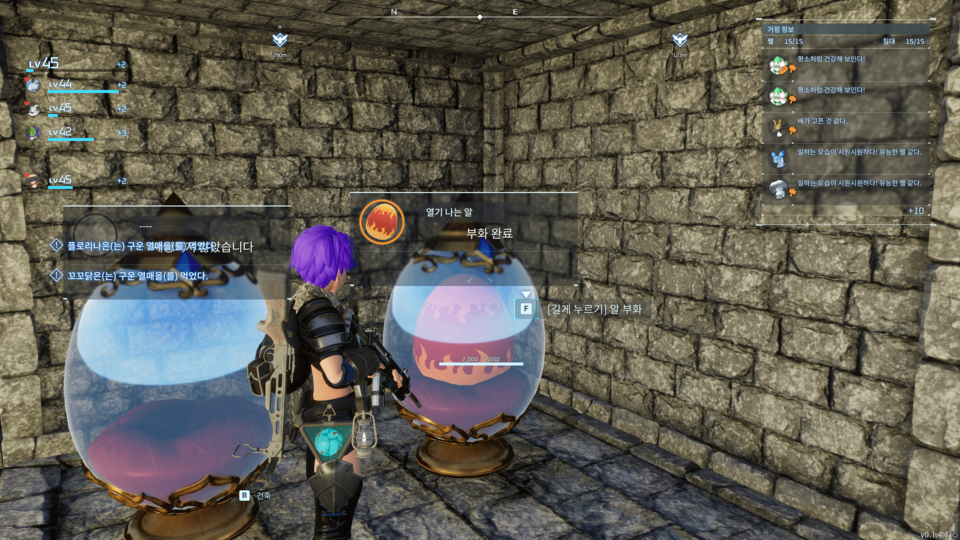 : [F] 버튼을 길게 누르거나 왼쪽 마우스 버튼으로 누르면 아래와 같이 팰이 부화된다.