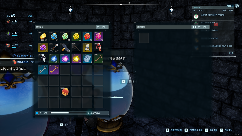 : 아래와 같이 인벤토리와 알을 배치할 수 있는 슬롯이 나타난다.