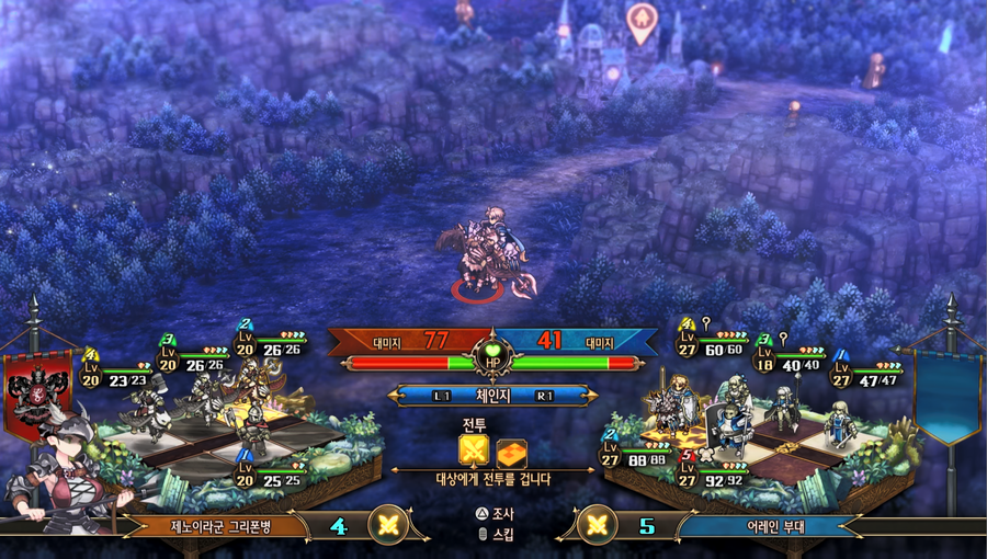 : 필드 모드에서 적과 조우한 경우에는 편성된 모든 부대 중에서 자유롭게 전투할 부대를 선택할 수 있다.