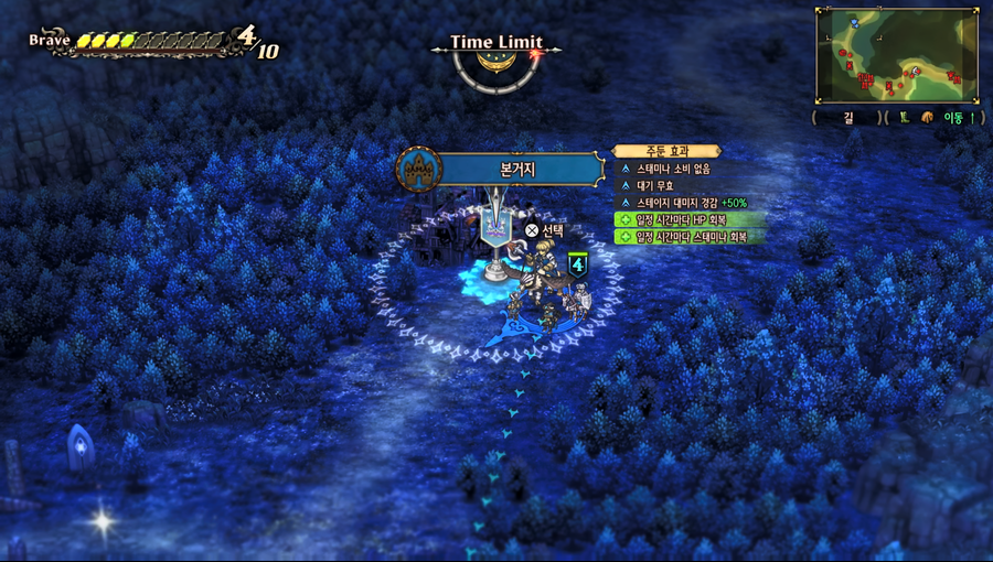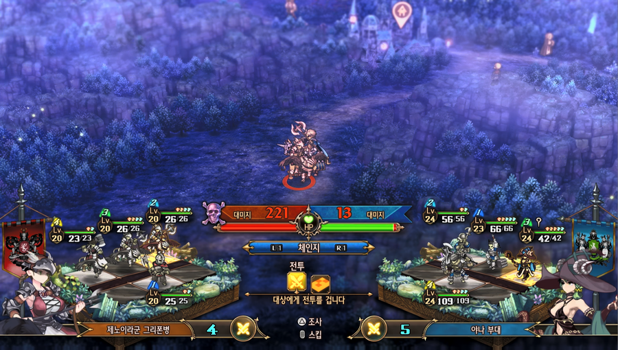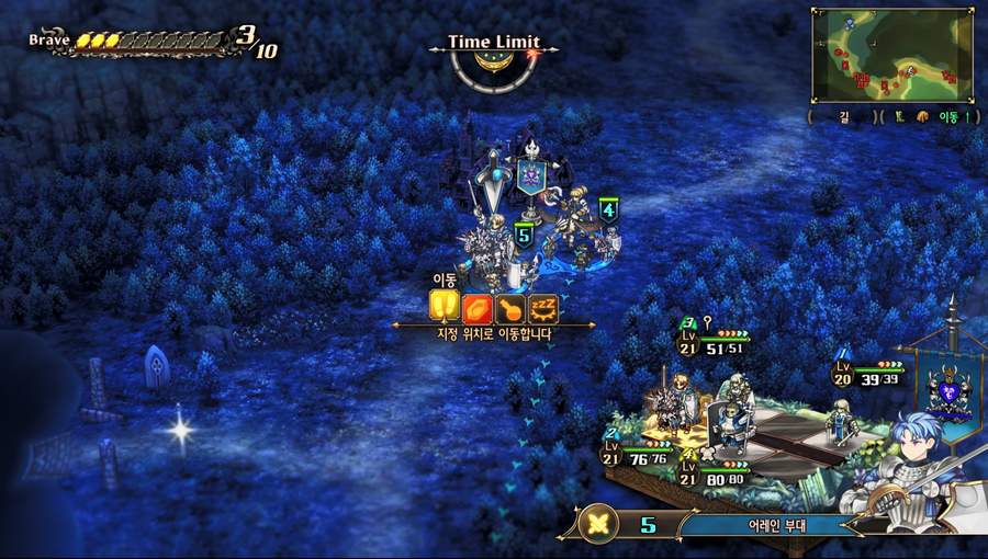 자유롭게 부대를 출진, 거점으로 퇴각, 이동, 공격 등을 진행할 수 있는 부분으로 전장 모드_초반과 동일하다.