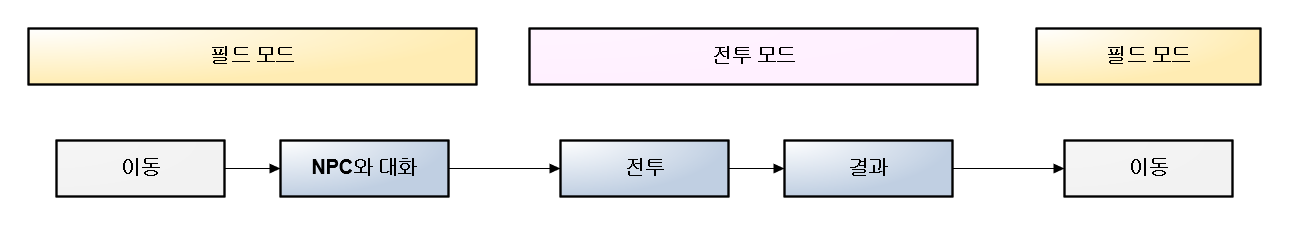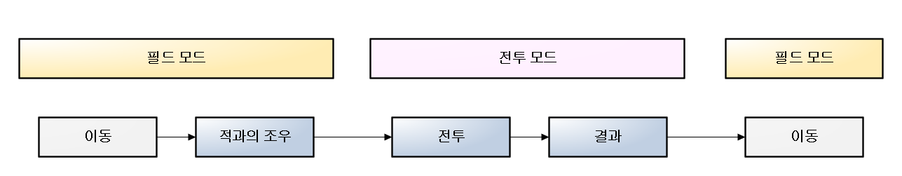 필드 모드에서 이동 중에 적과 조우한 경우에는 아래와 같은 흐름으로 전투가 진행된다.