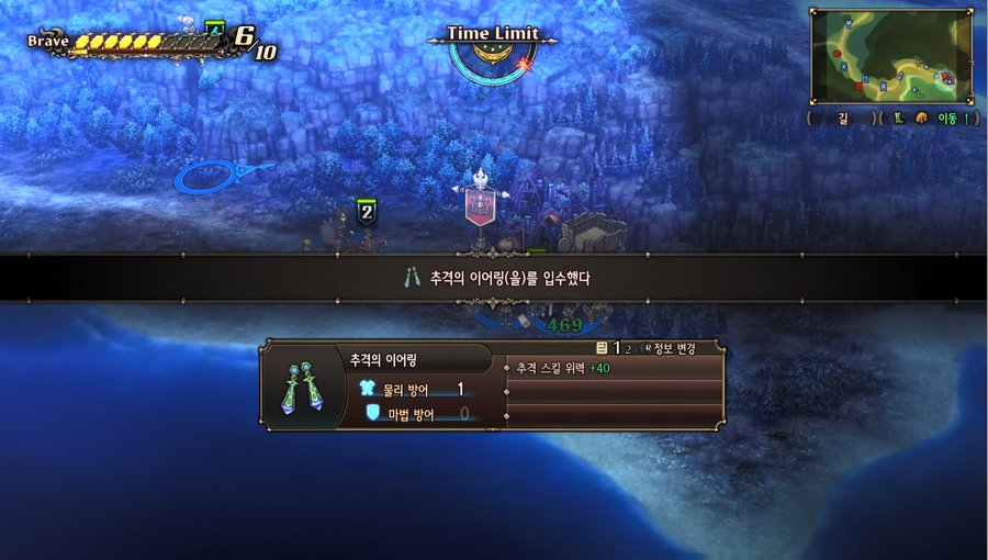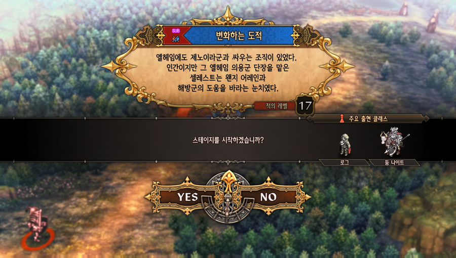 필드 모드에서 퀘스트를 진행하기 위하여 스테이지에 진입을 하는 상황이다. 진입하게 되면 전장 모드로 전환되고 전장 모드의 필드에서 적과 조우를 하면 전투가 발생된다. |