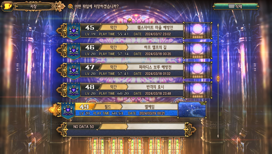 : [NO] 선택 시에는 저장 모드가 종료되고 필드 모드_후반으로 진행된다.