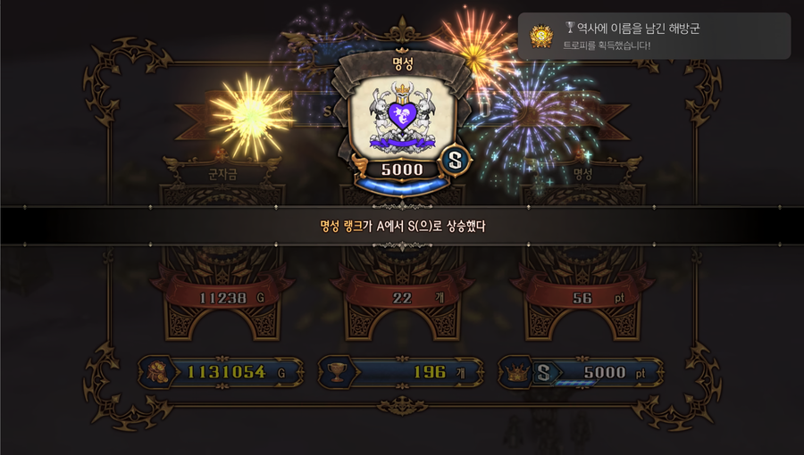 : 명성을 일정 수치 이상으로 달성하면 아래와 같이 자동으로 업그레이드가 이루어진다.
