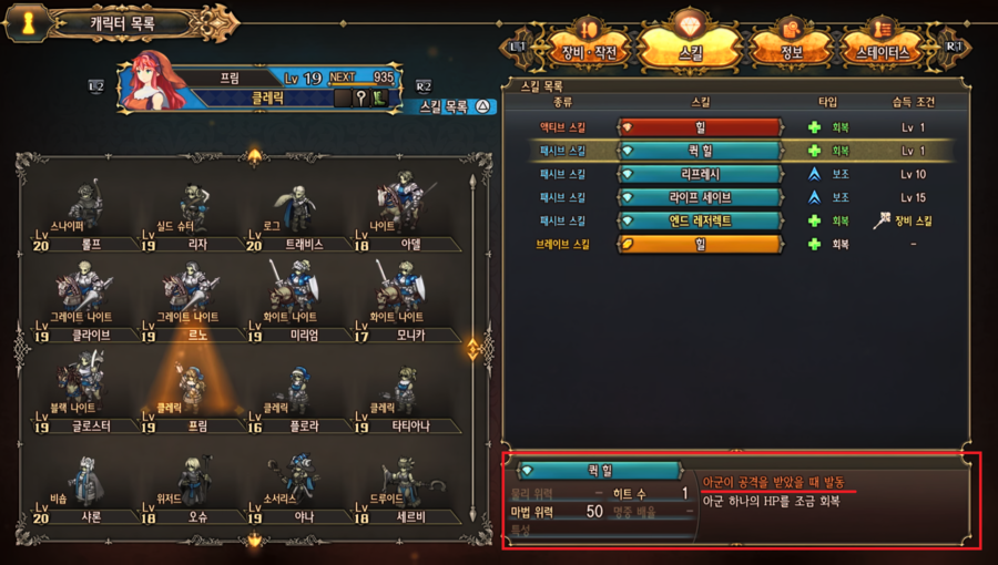 : 전투는 앞서 설명했던 것처럼 턴 방식이며 자동으로 전투가 진행된다.