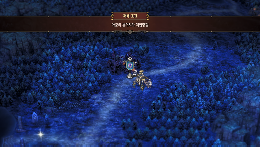 승리 | 적 전멸 | 전장에서 적이 소멸된다. 보상으로 경험치와 골드를 획득한다. 특정 부대를 전멸시키면 아이템 획득도 가능하다. 부대원들끼리 호감도도 상승한다. |