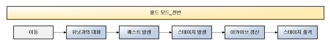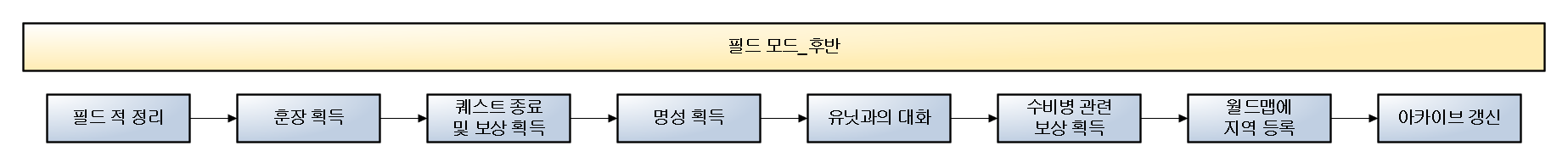 : 스테이지를 클리어 한 후 필드로 나왔을 때 이루어지는 부분으로 아래와 같은 흐름으로 진행된다.