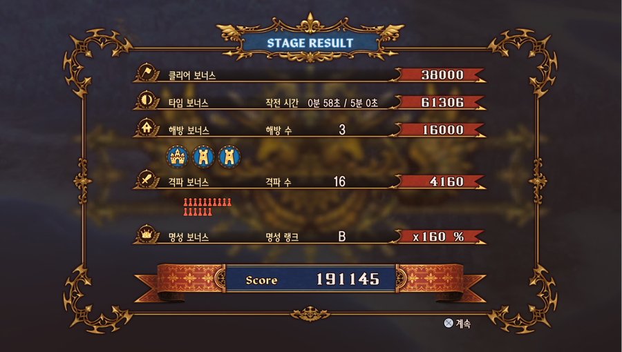 : 해당 스테이지에 대한 전투 결과가 아래와 같이 나타난다.
