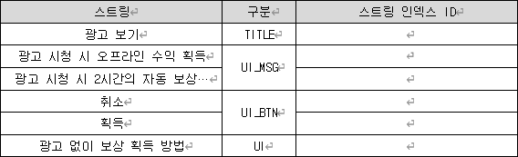 : 터치 시, 광고 보기를 통해 2시간의 수익을 곧바로 획득할 수 있는 명령이다.