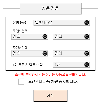 단, 선택한 등급을 포함한 윗 등급의 아이템만 선택되고 나머지는 자동 판매된다.