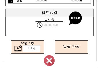 : 광고 보기를 완료하면 Lv업 시간이 30분 감소되며 광고 보기 횟수도 1 감소한다.