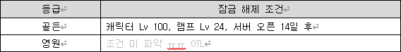 : 등급 앞에 있는 자물쇠를 터치하면 언락 조건이 시스템 메시지로 나타난다.