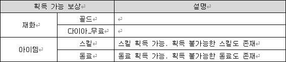 ◦ 획득 가능 보상