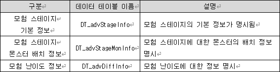 ▪ 모험 데이터 테이블 구조