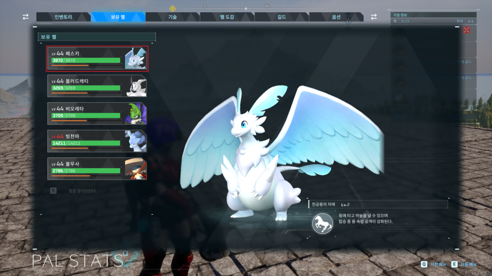 : 아래와 같이 보유 팰 UI로 화면이 전환된다.
