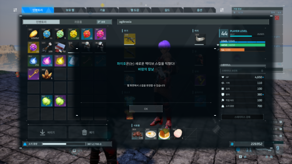 - 액티브 스킬 습득