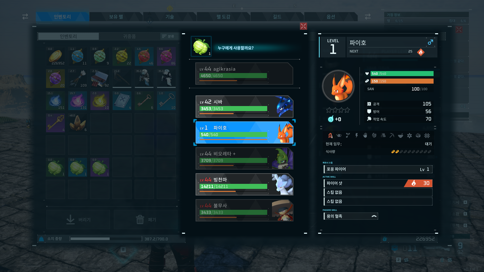 >> 5단계 액티브 스킬을 습득할 팰 선정