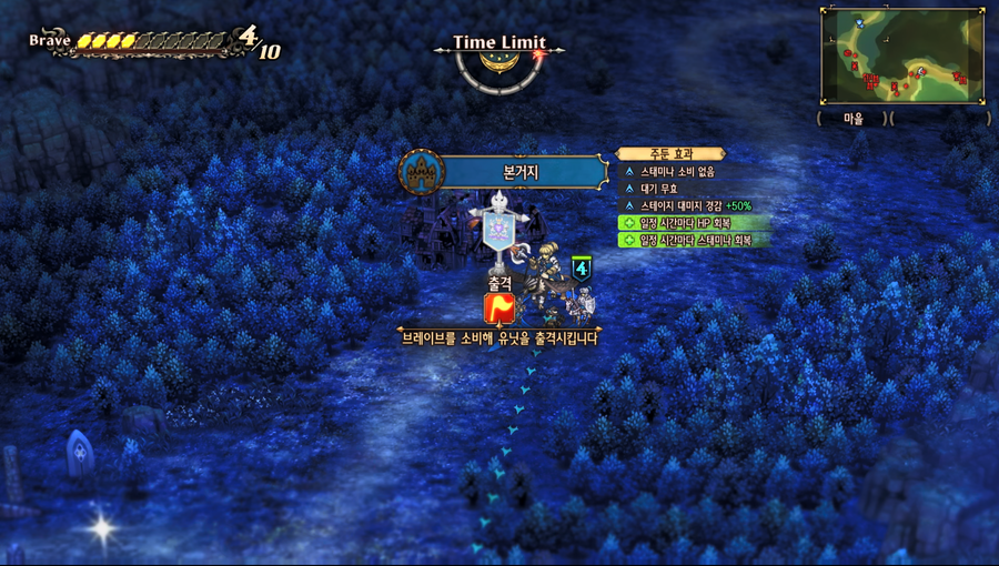 자유롭게 부대를 출진, 거점으로 퇴각, 이동, 공격 등을 진행할 수 있는 부분으로 전장 모드_초반과 동일하다.