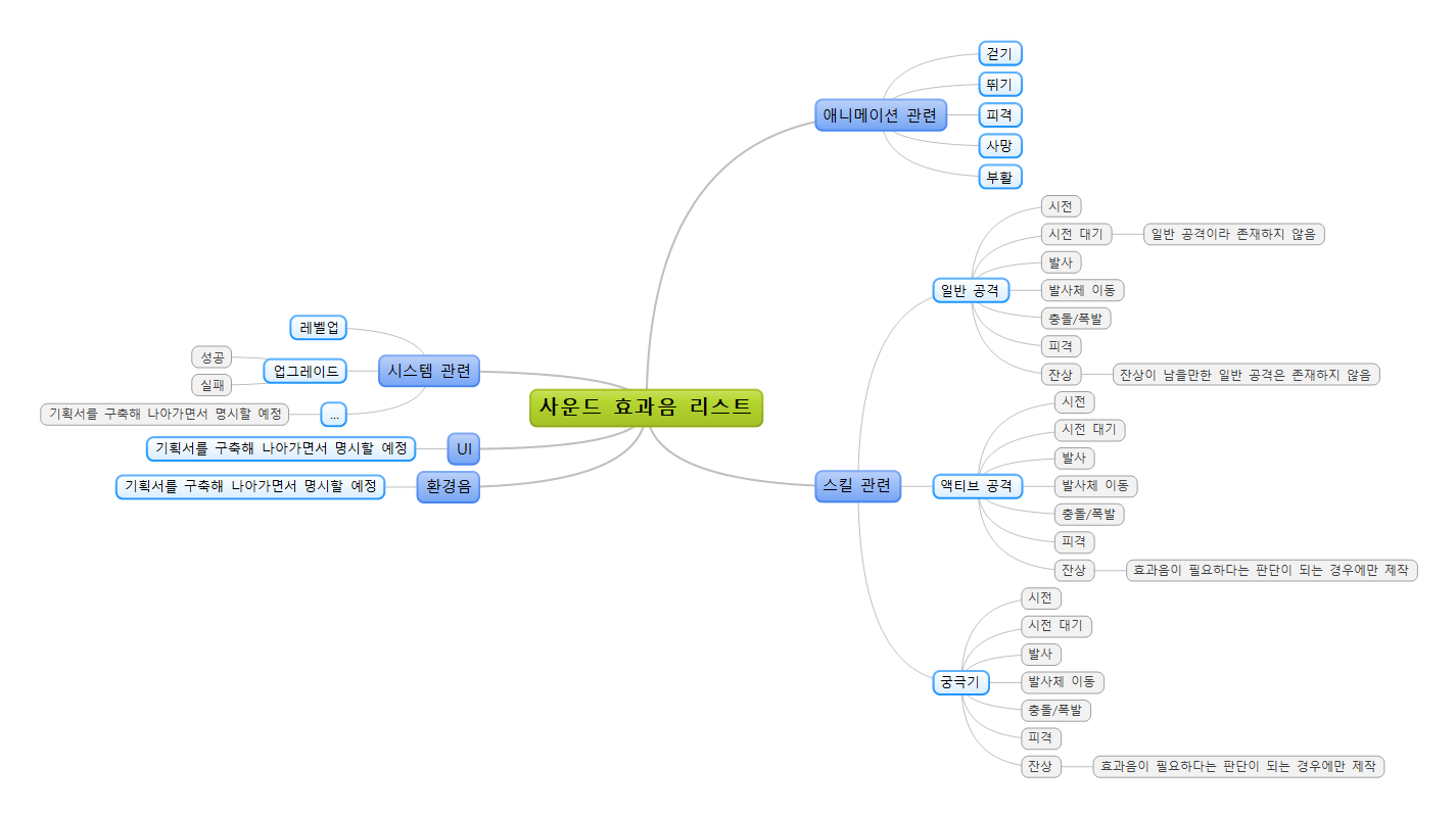 사운드 효과음 리스트에 대한 문서 작업에 앞서 작성한 내용들이에요.